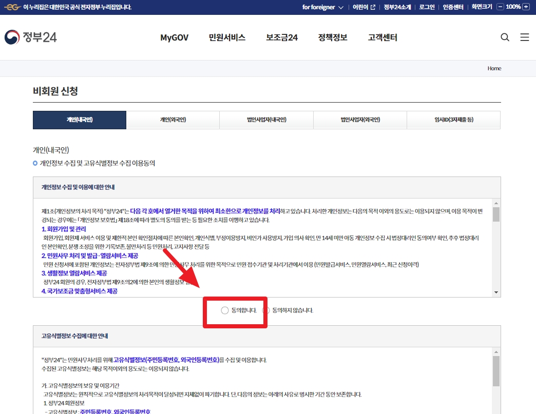 '동의합니다' 체크해 주세요.