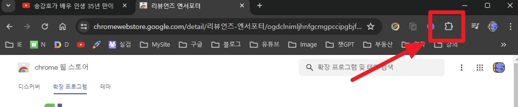 크롬 웹 브라우저 상단의 직소 퍼즐 모형 보이시죠?